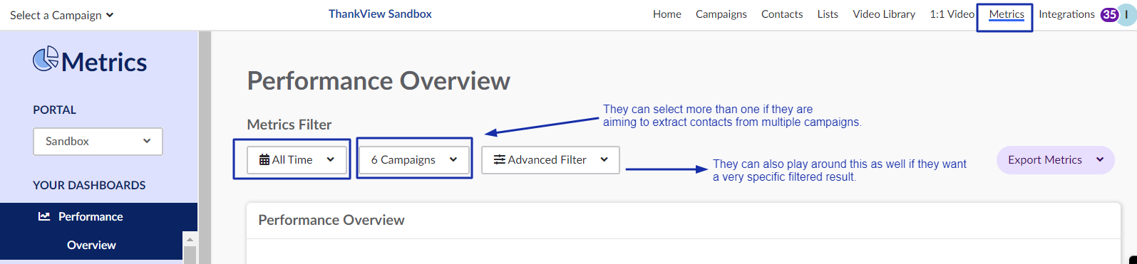Navigate to the 'Metrics' page.