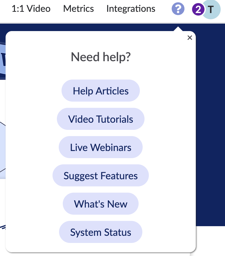 If you log into your ThankView portal, you will automatically be able to access the help center from the following two places:
